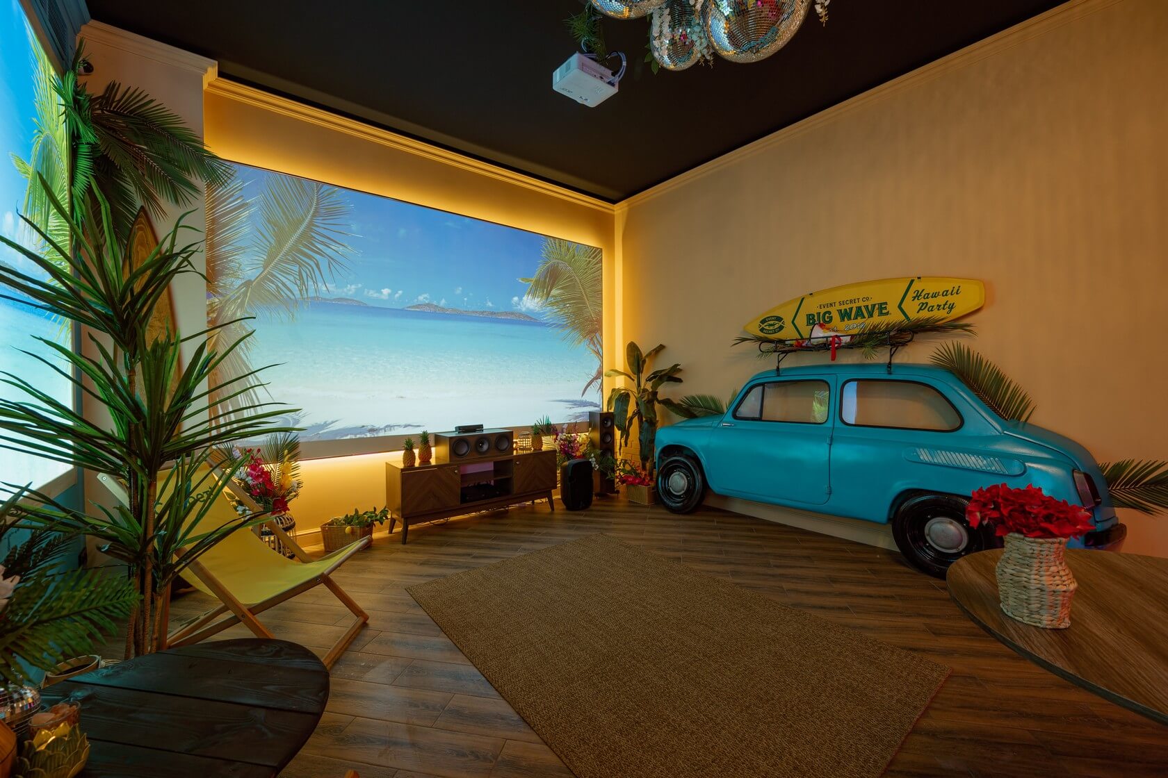✓ фотозона - (занавес-дождик, бум.гирлянда "с днём рождения" + фонтан из 8 шаров)